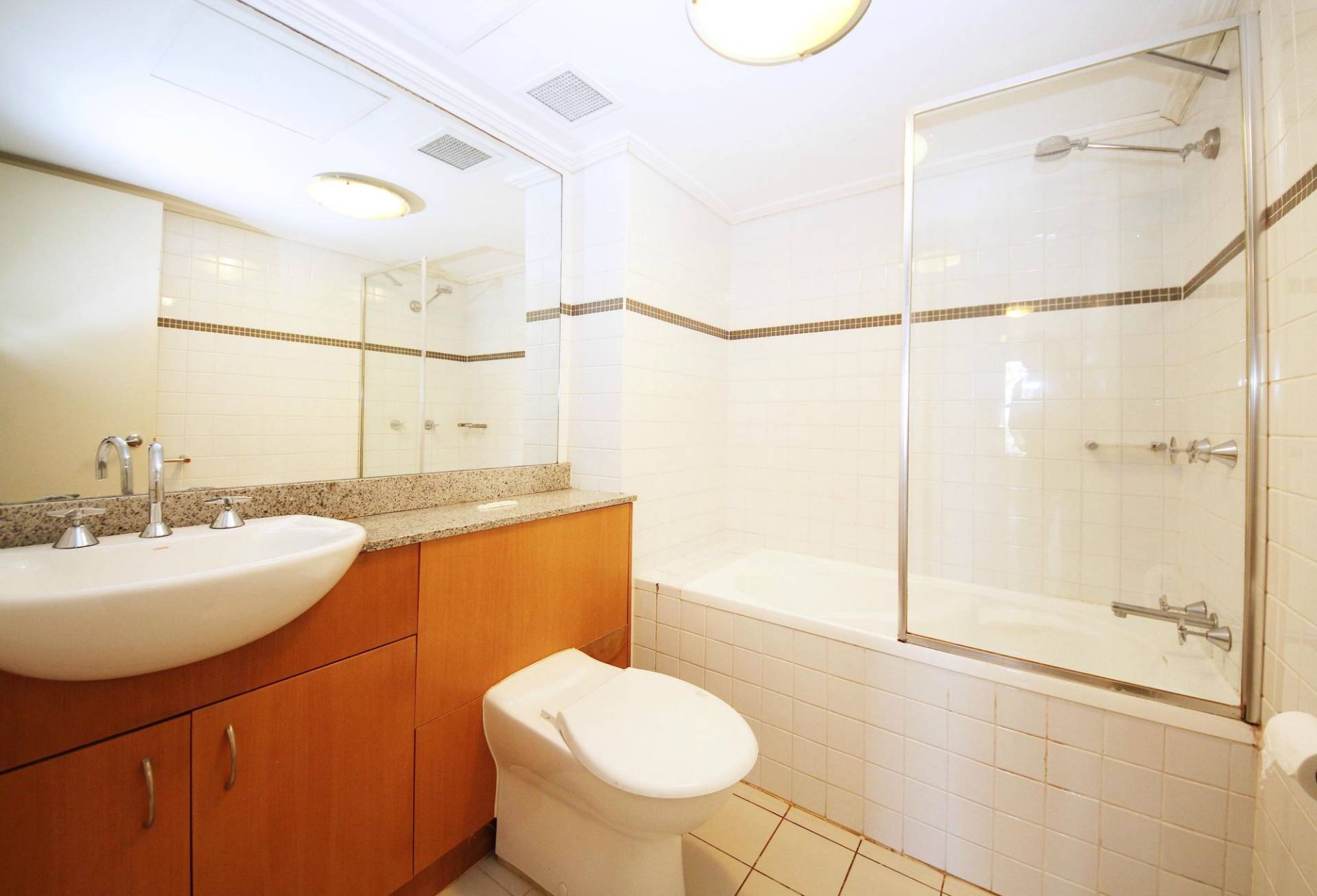 - The large main bedroom has built ins, high ceilings and a private leafy out look. The main bathroom has floor to ceiling tiles and quality fittings.