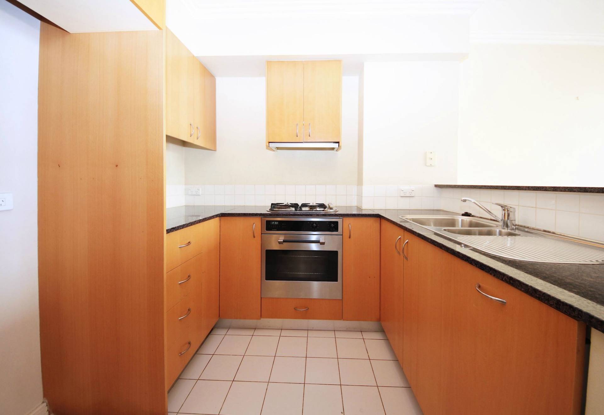 - The modern gas kitchen has a blanco oven, granite bench tops and an integrated dishwasher.