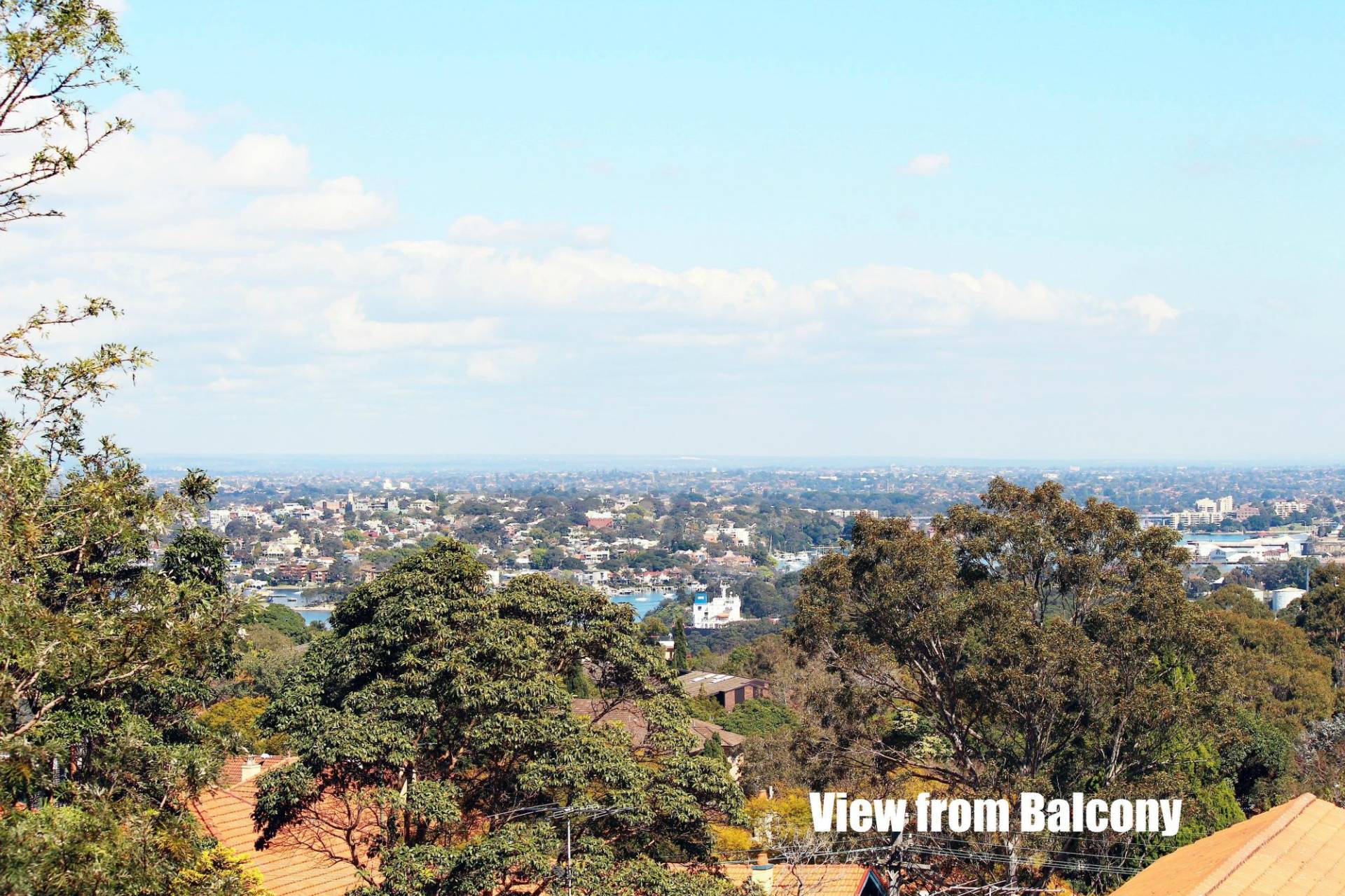 - The balcony has water views to the Iron Cove bridge and Balmain.